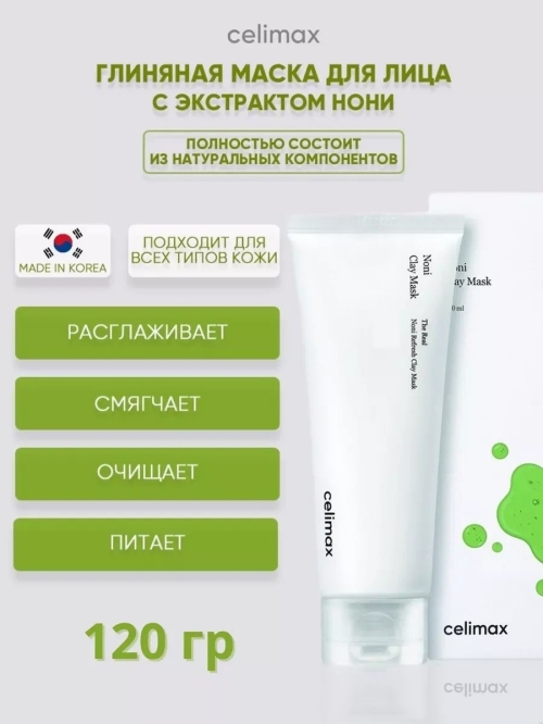 №5244 Маска Для Лица Глиняная CELIMAX NONI (Оригинал) Очищающая глиняная Celimax Noni Refresh Clay Mask отлично освежает и не пересушивает во время использования. Проникает глубоко в поры, абсорбируя излишки кожного сала и растворяя жировые пробки, способствует сужению расширенных пор. Измельчённые плоды нони обладают мягким полирующим действием, выравнивают микрорельеф и отшелушивают ороговевшие клетки эпидермиса.
